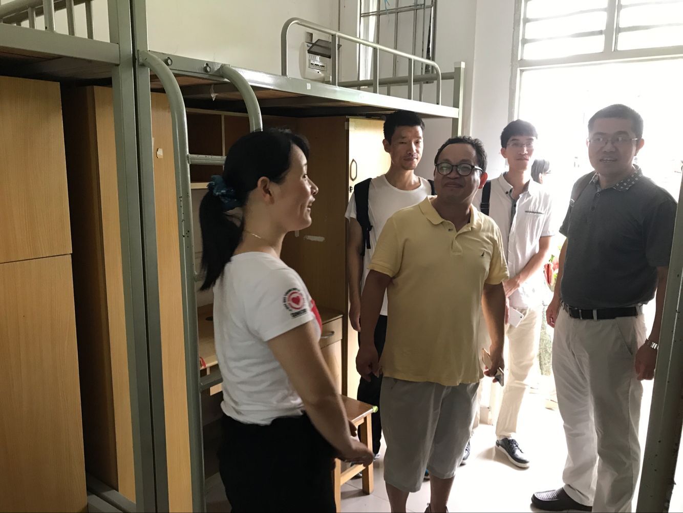 下午,学院领导老师走访了每一间新生宿舍,叮嘱学生整理好行李物品,保持与老师及师兄师姐的联系,凡事注意安全,尽快适应大学生活。