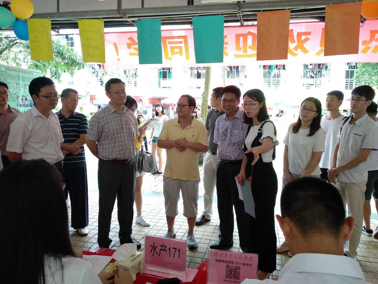 9点多,校党委宋垚臻书记、骆少明校长等来到学院迎新点。他们充分肯定了动科院在简化报到流程、加强安全警示方面所做的工作。