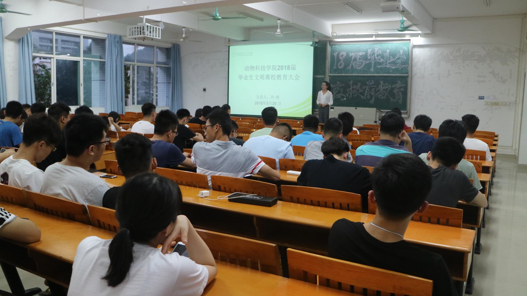2018年520号晚上7点,williamhill中文在杨钊杨勋楼209举行2018届毕业生离校前教育。2018届全体毕业生出席本次会议,辅导员许鸿老师担任主讲。