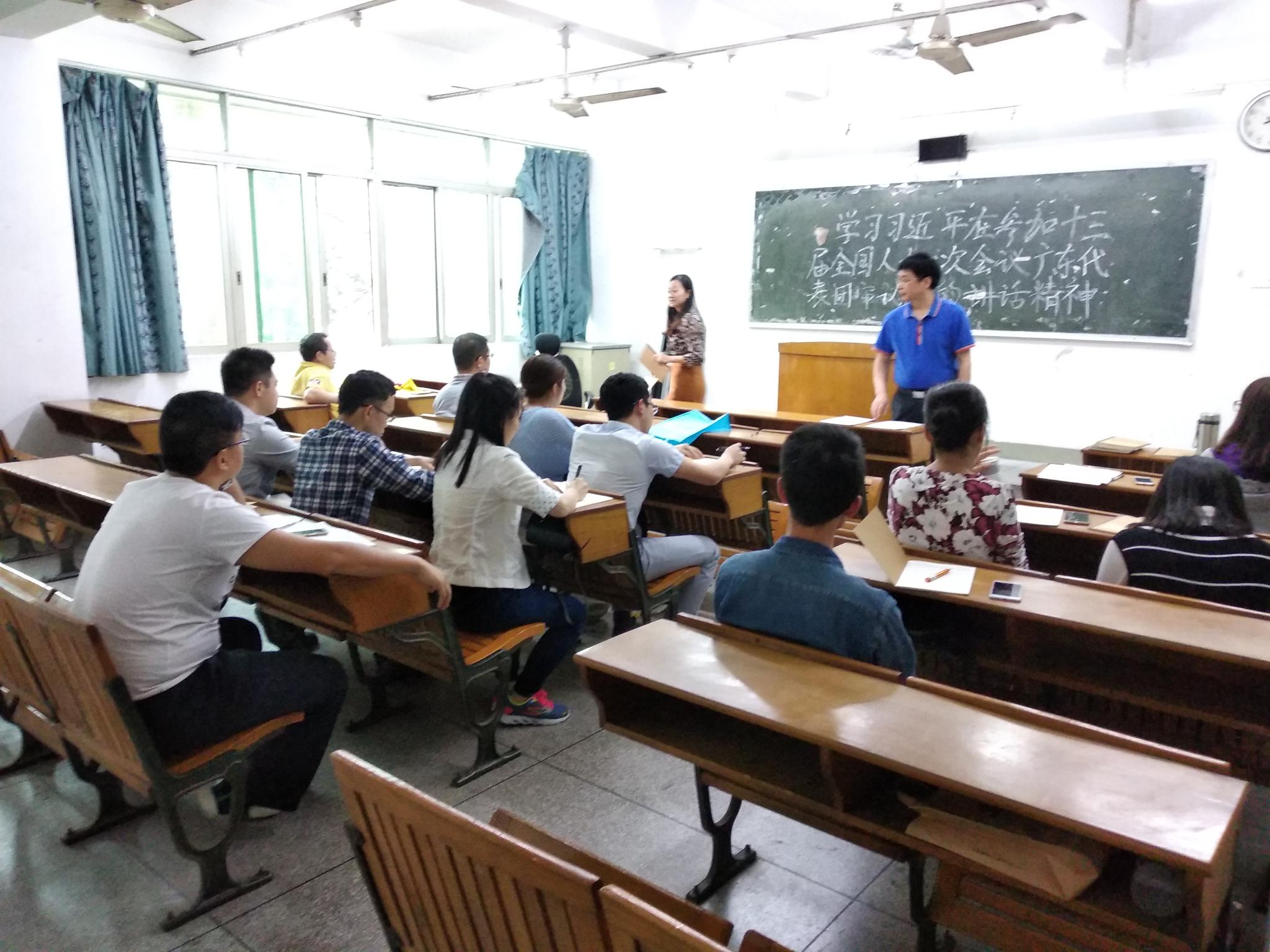 会上,由欧书记传达了学校关于学习宣传贯彻习近平总书记系列重要讲话精神的通知要求,教工党支部书记唐军带领大家集体学习《习近平总书记在参加十三届全国人大一次会议广东代表团审议时的讲话精神》原文。林蠡院长指导党员老师认真学习感悟,每位党员在Q群上发表自己的学习心得,并展开进一步讨论。