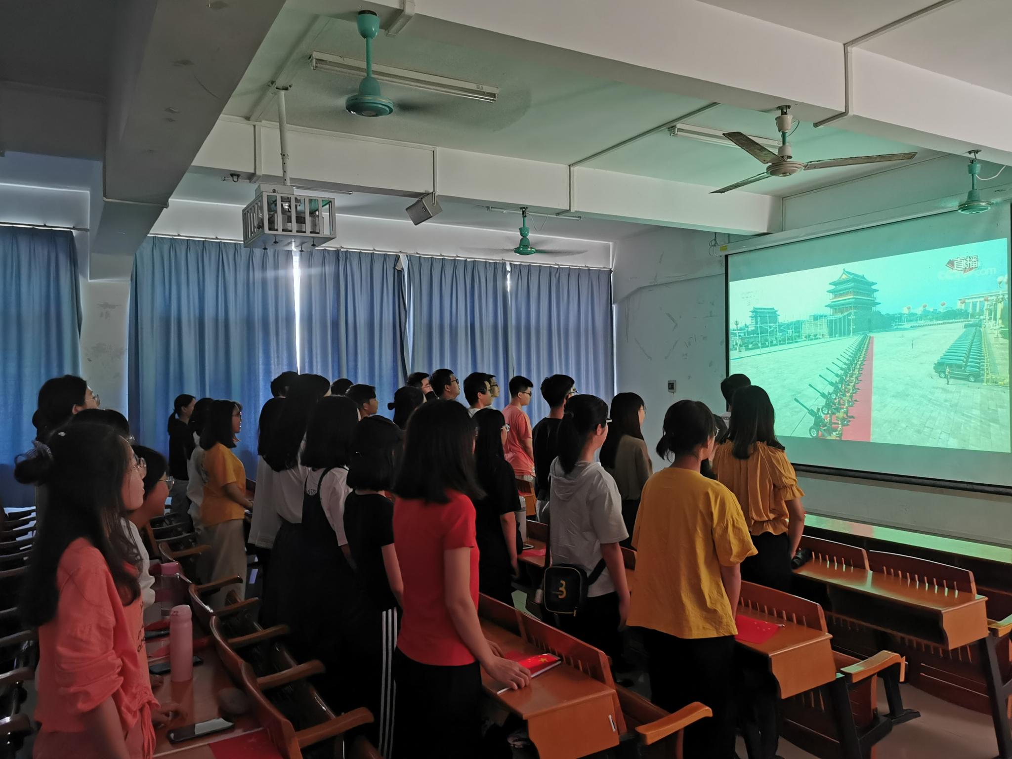 10月1日上午,庆祝中华人民共和国成立70周年大会在北京天安门广场隆重举行,20余万军民以盛大的阅兵仪式和群众游行庆祝中华人民共和国成立70周年。在这举国同庆的日子里,为方便广大在校学生观看国庆系列庆典活动的直播,增强爱国意识,激发爱国情感,williamhill中文组织留校学生在主会场白云校区D2多媒体教室和分会场杨楼206教室集体观看盛大阅兵仪式实况直播。