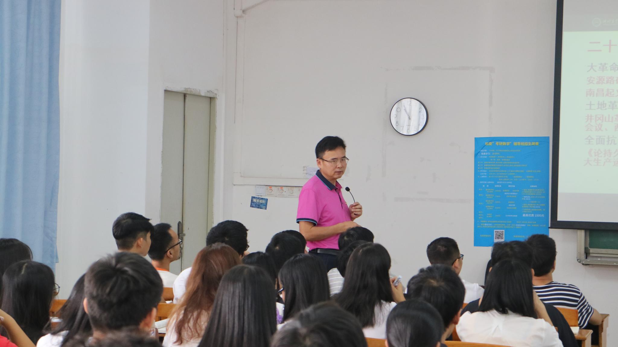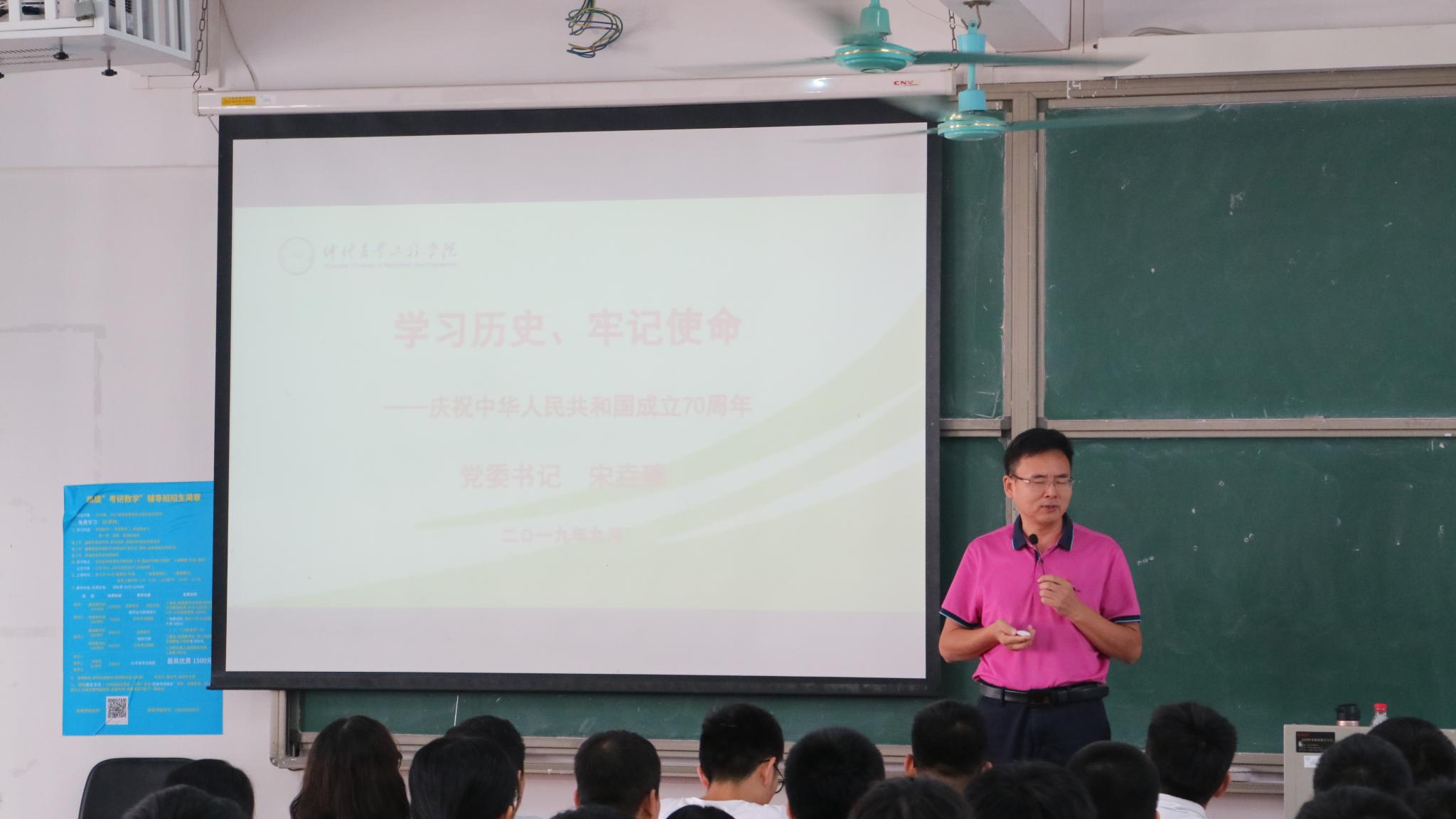 9月25日上午,学校党委书记宋垚臻以“学习历史,牢记使命”为主题,在白云校区杨钊杨勋楼402 为williamhill中文动科水产专业2018级学生讲授本学期第一堂思政课。