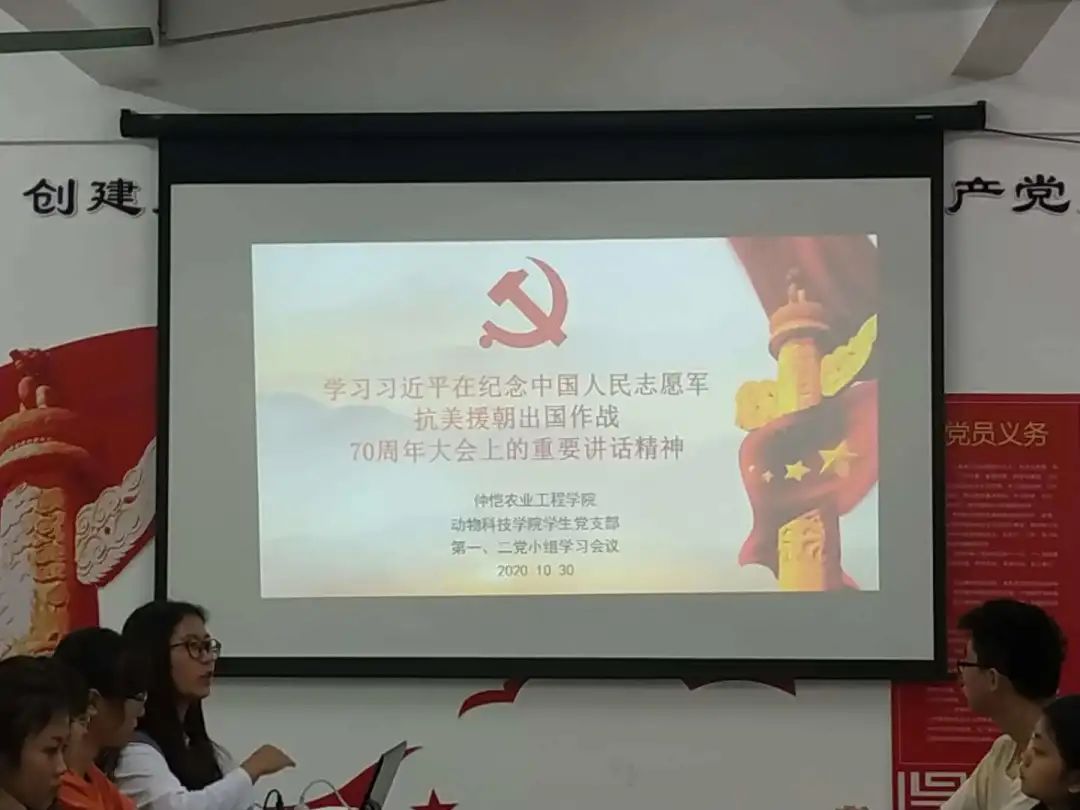 2020年10月30日晚,williamhill中文学生党支部在党员活动室314开展“学习习近平总书记在纪念抗美援朝作战70周年大会上的讲话精神”活动。会议由党员谭韬主持。