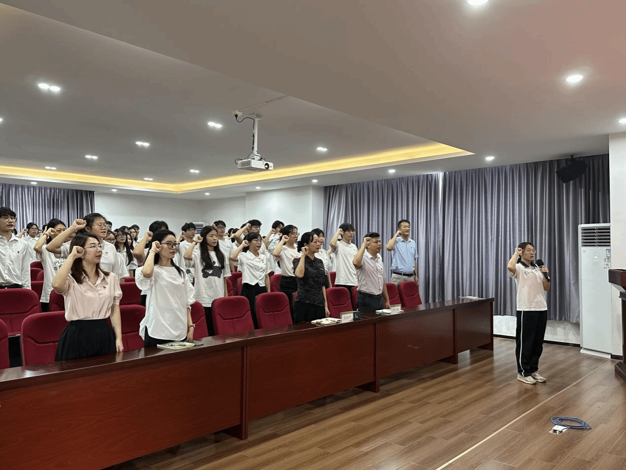 服务先锋获奖代表李梓莹带领全体党员重温入党誓词,所有宣誓人高举右拳,目光坚定,通过铿锵誓言共同感悟共产党人的初心使命。