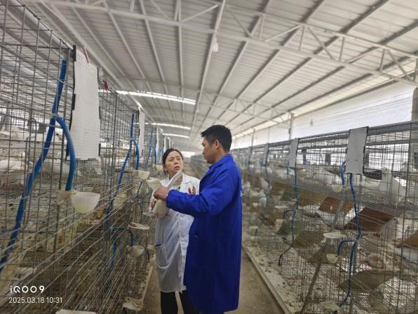 考察首站走进广西肉鸽行业标杆企业——桂柳利腾农业科技。作为华南唯一持有肉鸽"种畜禽生产经营许可证"的龙头企业,其银王鸽存栏量居全国首位,年售种鸽20万对,占据华南市场主导地位。企业通过"祖代种鸽+全产业链"模式构建闭环生态,以"公司+合作社+农户"机制带动500余户农民增收。臧莹安团队重点调研企业"替抗健康养殖"技术体系,围绕英德鸽业饲料成本高、疫病风险大等痛点展开深度探讨,并就微生态二次育肥技术进行专项对接。中国畜牧业协会鸽业分会副会长、桂柳利腾董事长刘大利全程陪同交流。