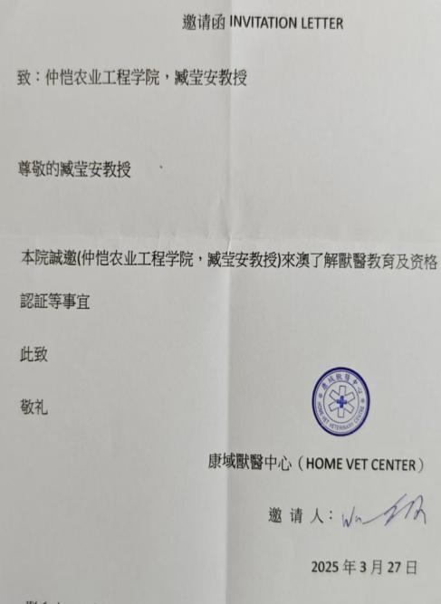 3月27日,应澳门康域医疗中心邀请,williamhill中文教授、民盟主委臧莹安赴澳门开展宠物医疗专题考察。此次访问联合广州赛诺动物医院姚德海院长,重点走访多家澳门宠物医疗中心及"宠物用品一条街",深入了解2023年澳门新修订《兽医法》实施后的执业准入标准、资格认证体系及与内地兽医教育衔接机制,探索粤港澳大湾区兽医领域协同发展新路径。