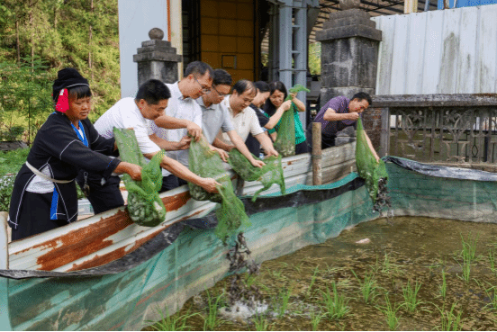 为贯彻落实“百县千镇万村高质量发展工程”工作部署,对接“双带头人”教师党支部书记“广东行”专项行动要求,近日,威廉官网中国农村科技特派员、williamhill中文水产教工党支部梁日深副教授、李清清博士、寇红岩博士等党员,携手江门益远渔业科技有限公司陈珠森工程师前往清远市连南瑶族自治县大坪镇,开展“稻田鱼+N”模式试验苗种放养工作,大坪镇党委书记黎艳霞、党委副书记曾钰锋、驻镇工作队队长李斌科、副镇长罗运平以及镇政府相关工作人员参与了本次活动。