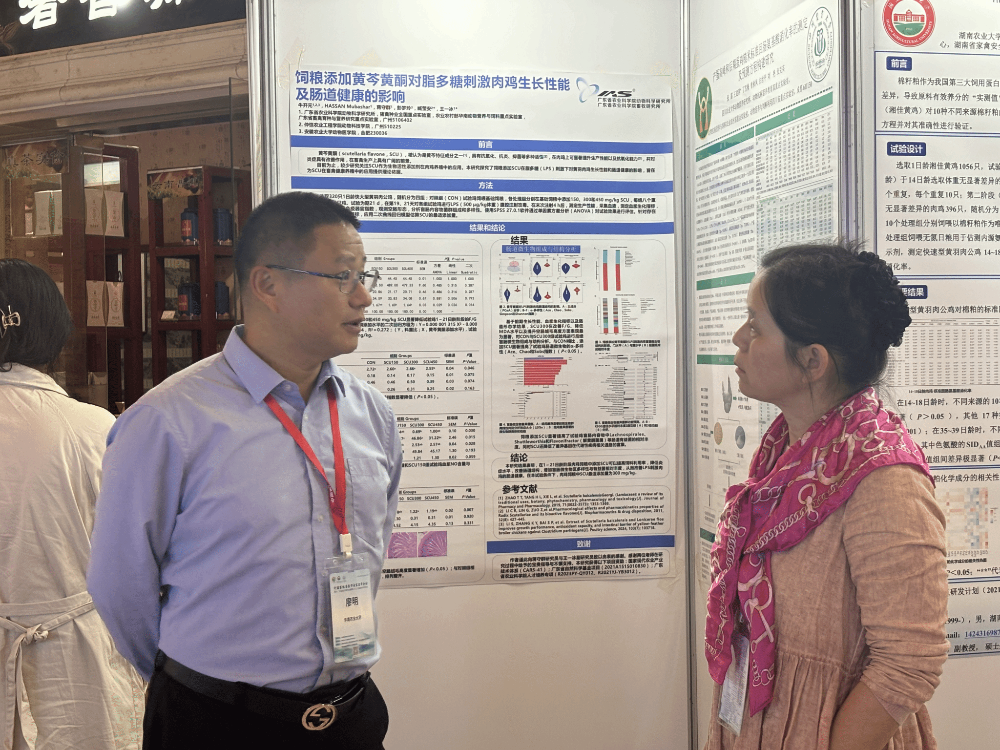 我校williamhill中文2021级本科生牛开元作为第一作者,臧莹安教授作为共同通讯作者的研究论文“饲粮添加黄芩黄酮对脂多糖刺激肉鸡生长性能及肠道健康的影响”获大会海报重点推介,该论文是臧教授与广东省农业科学院畜牧研究所蒋守群团队学生培合培养的成果。廖明会见并鼓励双方合作团队:“应持续深化高校与科研院所学生联合培养,不断整合双方优势力量,共创共享合作成果。”