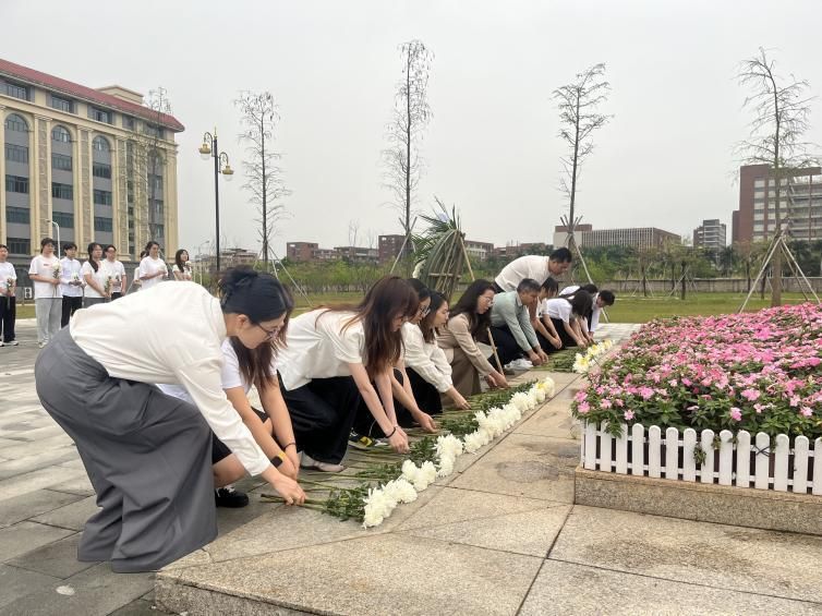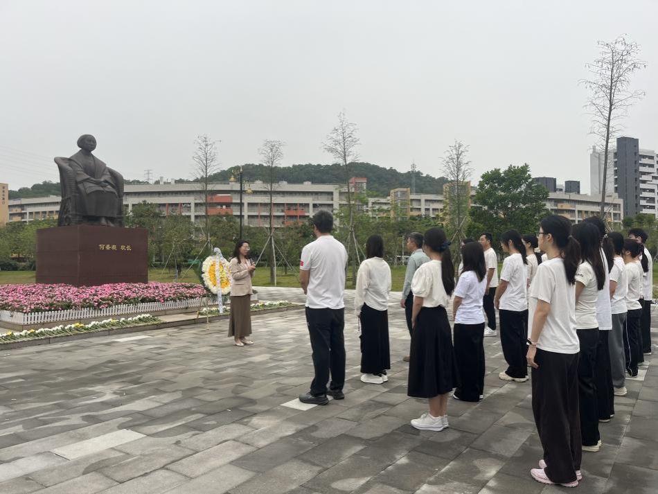 4月2日上午,学院党委书记沈洁、党委副书记李昌辉带领各学生党支部书记、学生党员代表、各学生组织代表、研究生代表,先后在廖仲恺像、何香凝像前举行清明祭扫仪式。