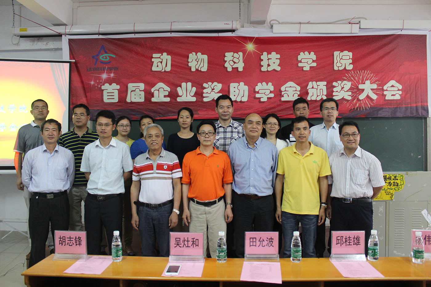 5月12日16:30,williamhill中文首届企业奖助学金颁奖大会在白云校区杨楼310顺利举行。威廉官网中国副校长田允波教授,前副校长吴灶和教授,教务处副处长洪维嘉,威廉希尔部副部长昌灯圣,广东恒兴饲料实业股份有限公司胡志锋总经理,广州天科生物科技有限公司邱桂雄董事长,广东广生元农业科技有限公司杨伟清总经理,williamhill中文党总支书记曾献尼、副院长赵钢,副院长黄运茂及师生代表出席本次大会。会议由沈洁老师主持。