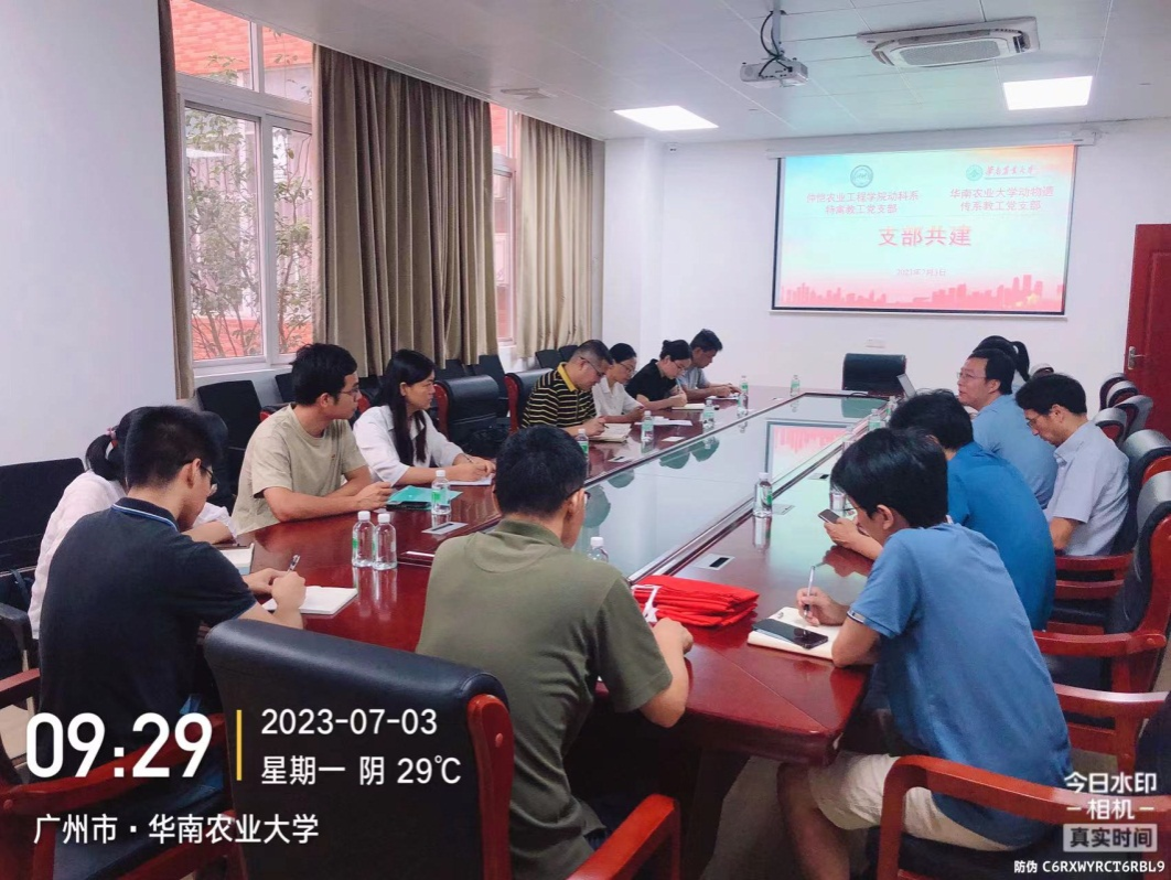 为扎实推进学习贯彻习近平新时代中国特色社会主义思想主题教育走深走实,充分发挥基层党组织的核心引领作用,推动党建工作和业务工作深度融合,7月3日,williamhill中文特禽平台教工党支部党员前往华南农业大学,与华南农业大学williamhill中文动物遗传与繁殖系教工党支部开展党支部共建活动。特禽平台教工党支部书记黄运茂教授、动物遗传与繁殖系教工党支部书记张哲教授、支部委员及部分党员同志参加此次共建活动。