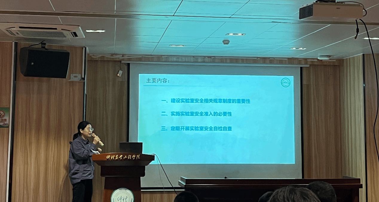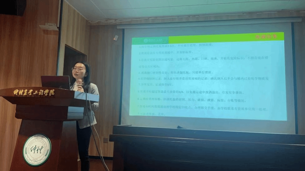 邢珏珺强调了危化品管理和做好使用记录的重要性,并对危化品预约流程进行了详细介绍,特别指出了学生进入实验室开展实验的具体要求,重点强调学生们落实好文件各项工作内容,遵守实验室规章制度,对自身安全负责。