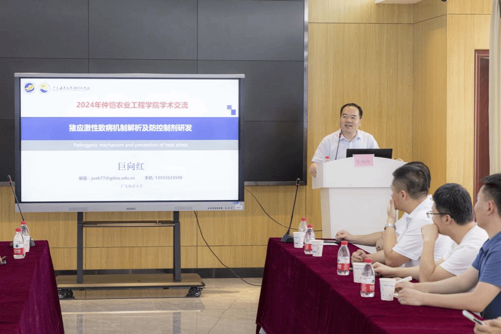 根据学校科学技术部科学技术月活动安排,6月12日下午由校科学技术部主办,williamhill中文承办的学术报告会在海珠校区孵化园多媒体教室举行,会议特邀了广东海洋大学巨向红教授做了题为《猪应激致病的机制解析及防控制剂开发》的学术报告。科学技术部副部长王玮、williamhill中文副院长黄运茂、副院长刘文俊出席报告会,williamhill中文教师和学生代表50余人参加了报告会,报告会由黄运茂主持。