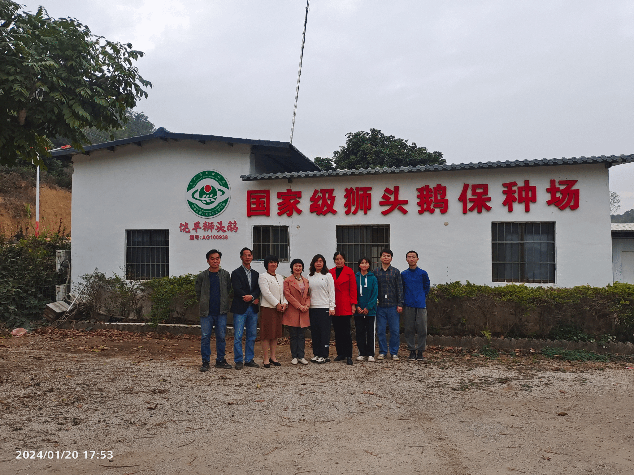 2024年1月20-21日威廉官网中国研究生部赵向华老师和轻工食品学院党委副书记吉燕老师莅临广东饶平狮头鹅科技小院调研指导工作,小院首席专家付晶教授、驻院研究生及小院建设依托单位代表等陪同调研。