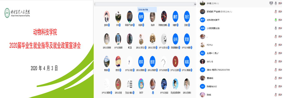 针对疫情情况,为进一步推进我院毕业生的就业工作,充分调动学生就业的积极性,帮助学生认清就业形势,准确定位,科学规划职业生涯,2020年4月3日我院通过腾讯会议组织开展了2020届毕业生就业动员大会,出席本次会议有williamhill中文党总支副书记朱路平、辅导员许鸿、李博,往届毕业生水产14级程硕和动科15级何炳健以及全体2016级毕业生。会议由williamhill中文辅导员许鸿主持。