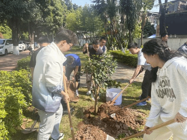为践行生态文明理念,建设绿美仲园,促进支部共建交流,3月 20日下午,williamhill中文研究生第二党支部与总务后勤部党支部在海珠校区联合开展植树主题党日活动。